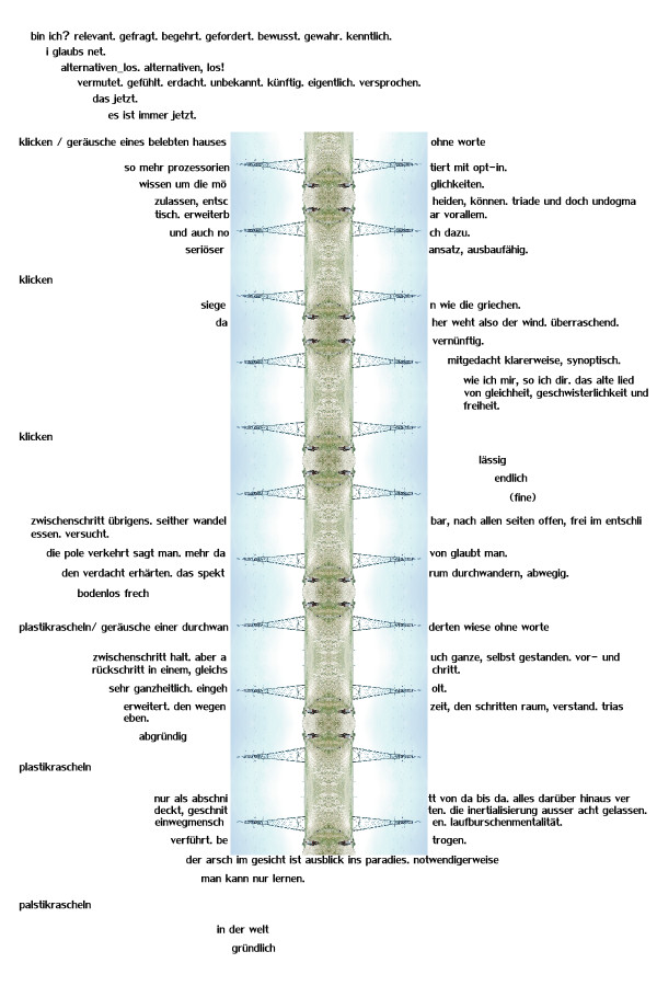 elementare Betrachtung des gemeinschaftlichen Gehens. Am Land, ins Land gedacht. Linksliberale Kleinbürgerlicheit. In der weiten Welt nicht angekommen.